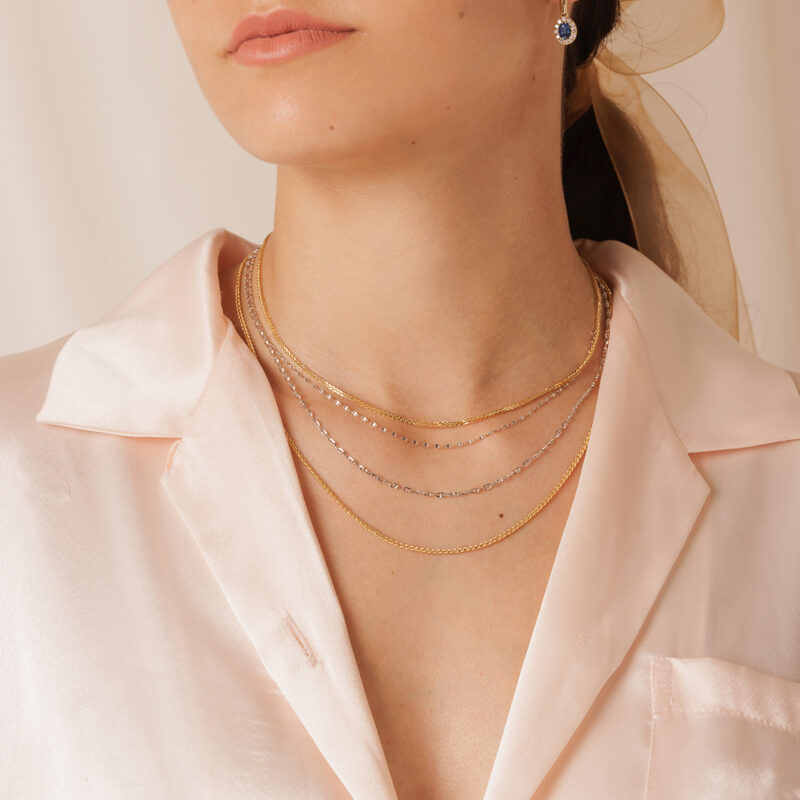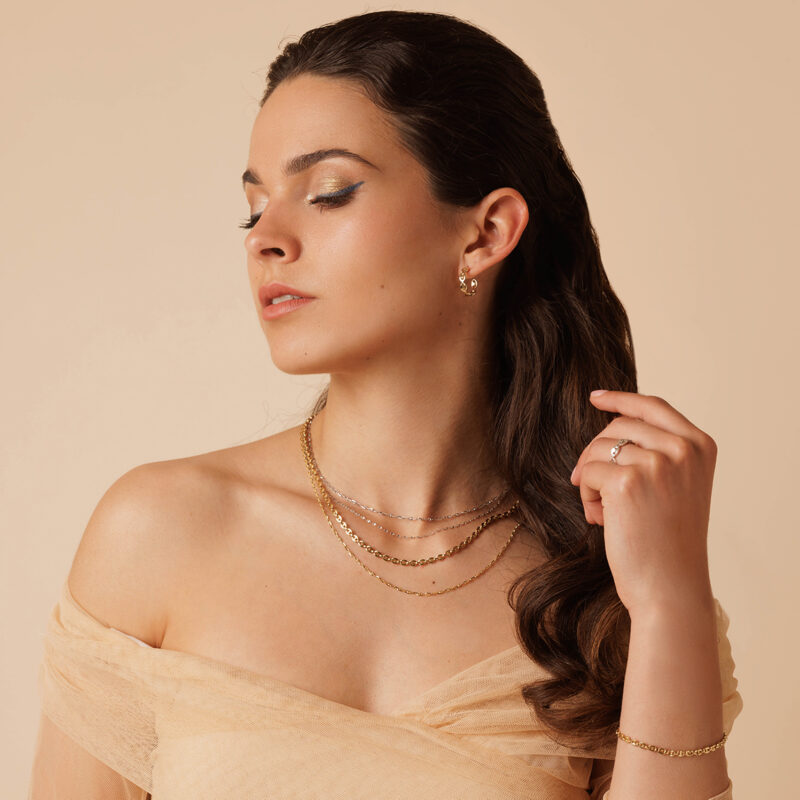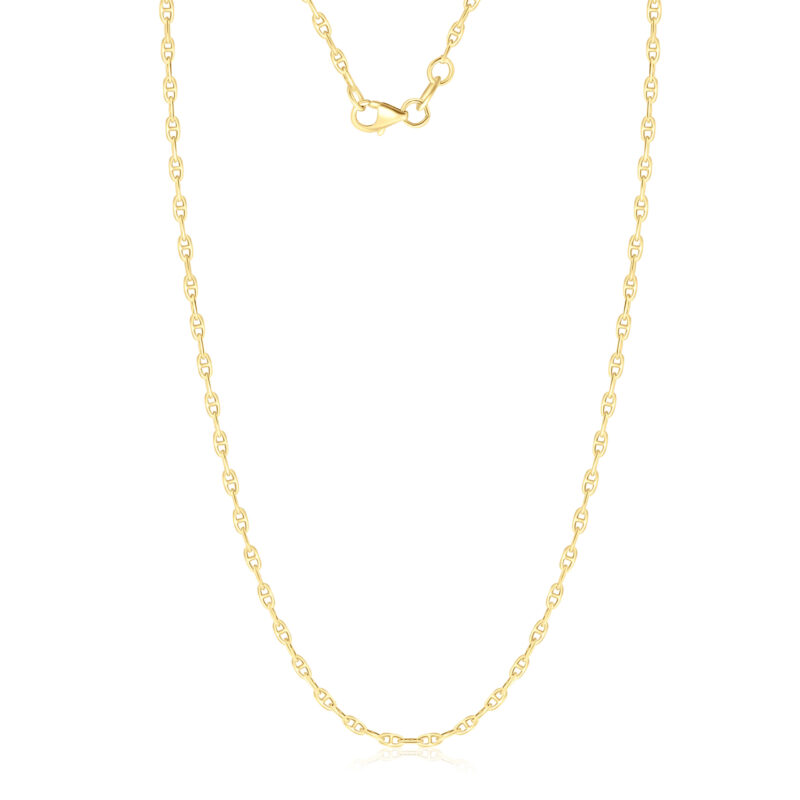 Het gouden Hamburg marine collier betovert met zijn afwisselende marine schakels. Elk gediamanteerd om het licht te vangen en een betoverende glans te creëren. Ervaar de schoonheid van dit sterke collier, geïnspireerd door levendige havens en stralend als de glinstering van de zon op het water.